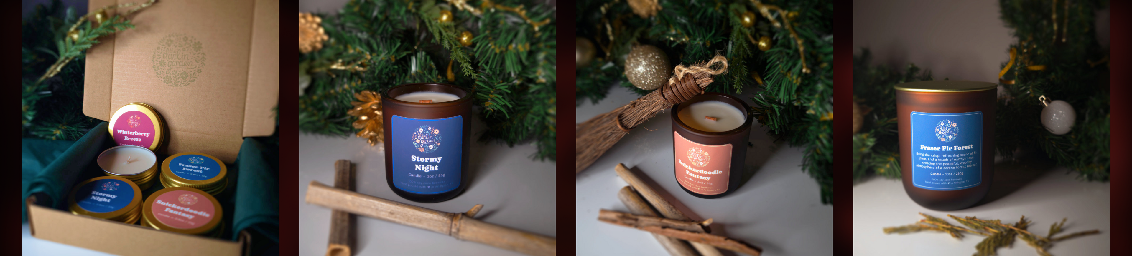 Crackling wood wick candles, natural car diffusers, and wax melts to create...